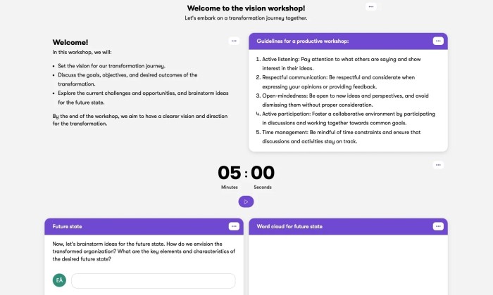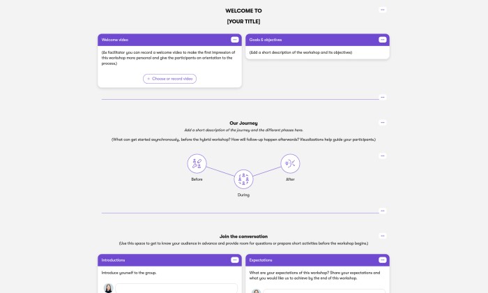 With this template, you can build a complete hybrid workshop, ready to go live, including before, during and after workshop activities.