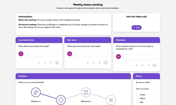 Pre, during & post-meeting template: Prepares participants with expectations and ideas, ensures equal input, and facilitates reflection for future improvements.