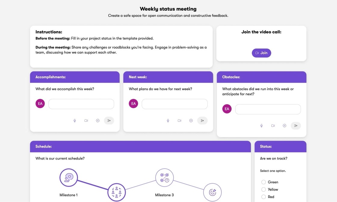 Streamline communication and collaboration during weekly status meetings